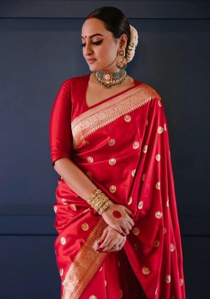 Dark Red Jacquard Work Soft Lichi Silk Saree